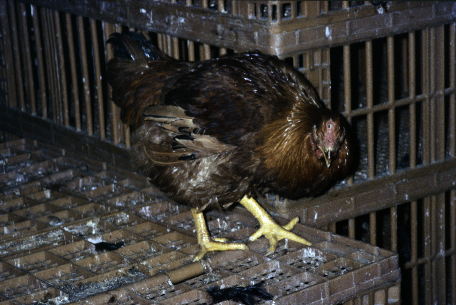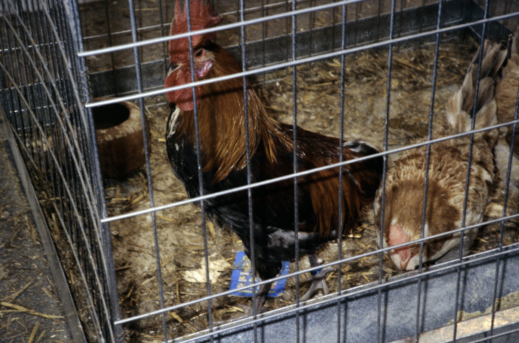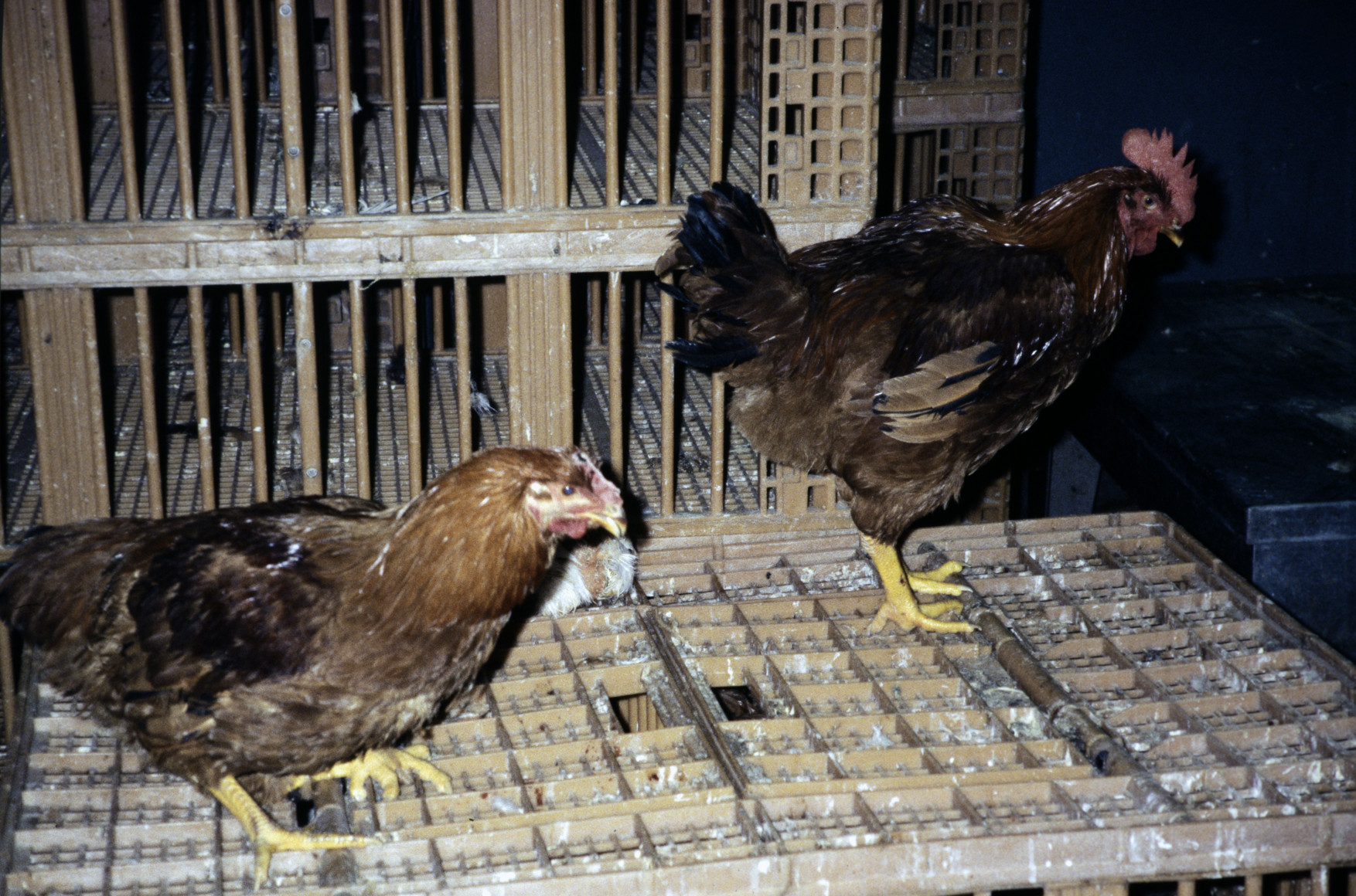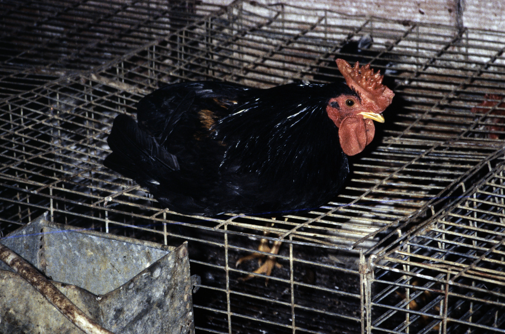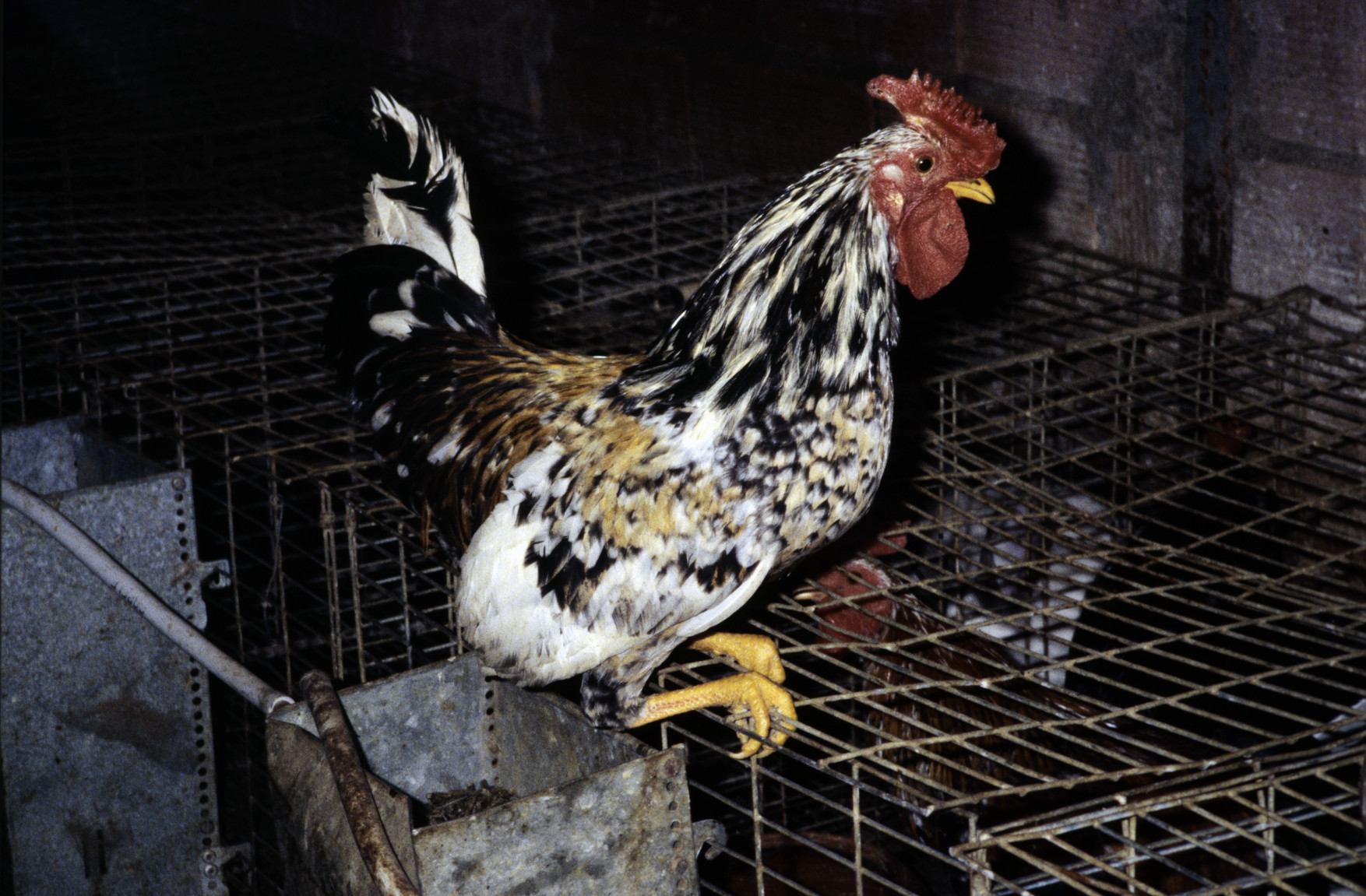 Jaula para venta de gallinas jóvenes de puesta de huevo rubio. El Maestrat, País Valencià (1992) 1754x1179, 791.6 KB |