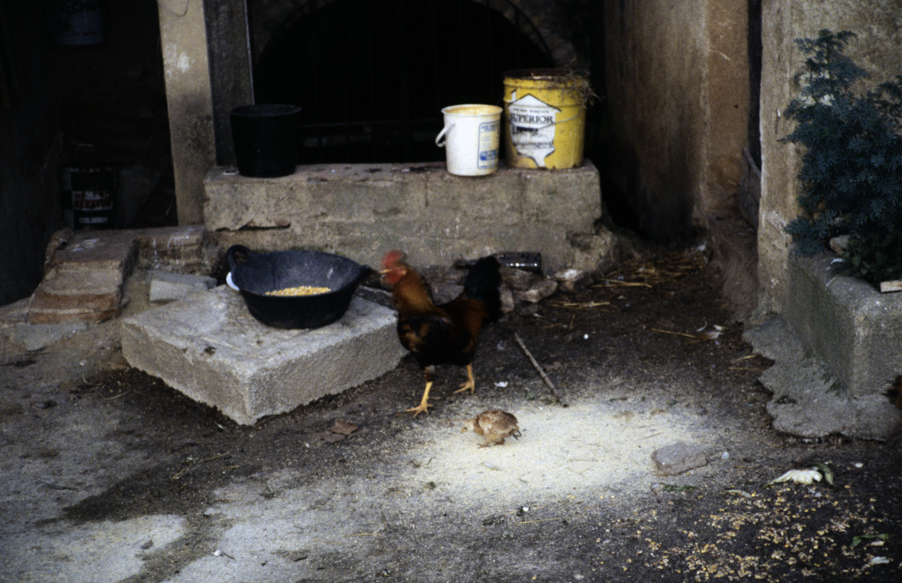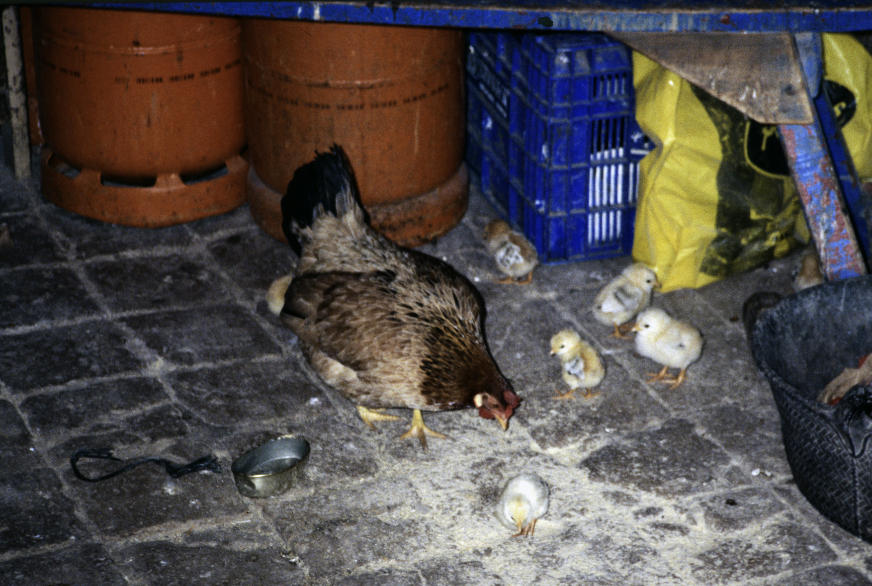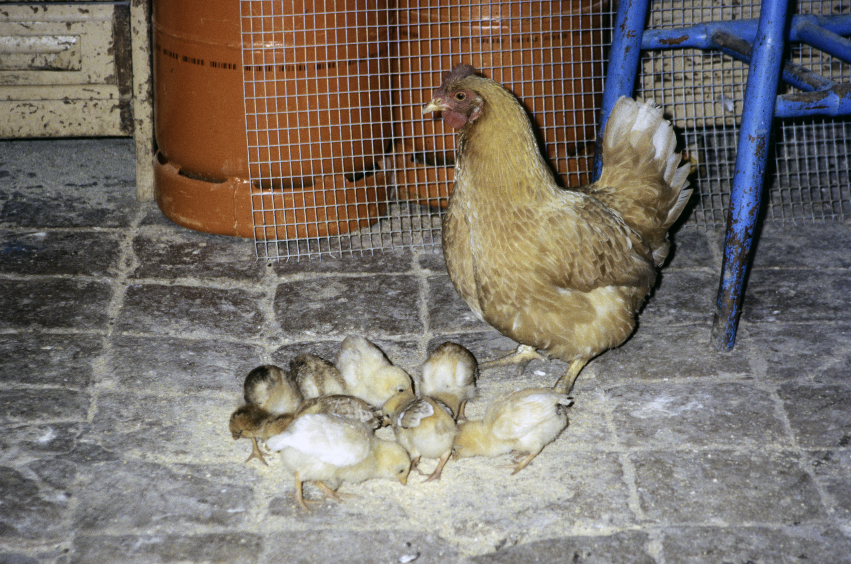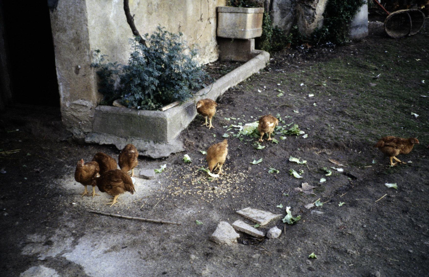 Gallina con pollitos, picoteando. Molí de l'Arrupit, Riudarenes, la Selva, Catalunya (1993) 1754x1153, 967.9 KB |