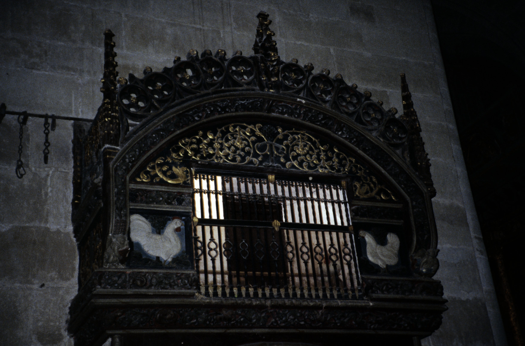 Gallinero de piedra labrada, de finales del Gótico, con gallo y gallina blanca vivos. En recuerdo del milagro del Peregrino: "Santo Domingo de la Calzada, que cantó la gallina después de asada". La Rioja (1993) 1754x1156, 492.7 KB |