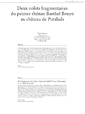 L'auteur fait connaître deux volets fragmentaires de triptyque dus au peintre rhénan Barthel Bruyn (vers 1493-1555), figure majeure de la peinture colanaise de la Renaissance. Ils sont conservés au château de Peralada (Gérone). Les volets, qui représentent deux familles apparentées et leurs saints patrons, portent des armoiries qui ont été remainées. Dans l'état actuel, elles ressemblent beaucoup à celles d'une ancienne famille patricienne colanaise, les Von Siegen. Le triptyque dont proviennent les fragments de Peralada a dû appartenir à un certain moment à cette famille. C'est vraisemblablement au xix ème siècle qu'il fut démembré, pour être mis au goût du jour. Les volets furent alors séparés du panneau central (disparu), et les saint patrons furent éliminés. Les portraits des donateurs devinrent ainsi des portraits «autonomes», au sens moderne du terme. Les deux volets du triptyque primitif, réduits à l'état de fragment, furent toutefois réunis en un diptyque, de façon à produire un effet d'ensemble «médiéval». |