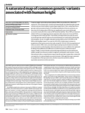 Common single-nucleotide polymorphisms (SNPs) are predicted to collectively explain 40-50% of phenotypic variation in human height, but identifying the specific variants and associated regions requires huge sample sizes. Here, using data from a genome-wide association study of 5. 4 million individuals of diverse ancestries, we show that 12,111 independent SNPs that are significantly associated with height account for nearly all of the common SNP-based heritability. These SNPs are clustered within 7,209 non-overlapping genomic segments with a mean size of around 90 kb, covering about 21% of the genome. The density of independent associations varies across the genome and the regions of increased density are enriched for biologically relevant genes. In out-of-sample estimation and prediction, the 12,111 SNPs (or all SNPs in the HapMap 3 panel) account for 40% (45%) of phenotypic variance in populations of European ancestry but only around 10-20% (14-24%) in populations of other ancestries. Effect sizes, associated regions and gene prioritization are similar across ancestries, indicating that reduced prediction accuracy is likely to be explained by linkage disequilibrium and differences in allele frequency within associated regions. Finally, we show that the relevant biological pathways are detectable with smaller sample sizes than are needed to implicate causal genes and variants. Overall, this study provides a comprehensive map of specific genomic regions that contain the vast majority of common height-associated variants. Although this map is saturated for populations of European ancestry, further research is needed to achieve equivalent saturation in other ancestries. |