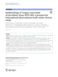The incidence, patient features, risk factors and outcomes of surgery-associated postoperative acute kidney injury (PO-AKI) across different countries and health care systems is unclear. We conducted an international prospective, observational, multi-center study in 30 countries in patients undergoing major surgery (> 2-h duration and postoperative intensive care unit (ICU) or high dependency unit admission). The primary endpoint was the occurrence of PO-AKI within 72 h of surgery defined by the Kidney Disease: Improving Global Outcomes (KDIGO) criteria. Secondary endpoints included PO-AKI severity and duration, use of renal replacement therapy (RRT), mortality, and ICU and hospital length of stay. We studied 10,568 patients and 1945 (18. 4%) developed PO-AKI (1236 (63. 5%) KDIGO stage 1500 (25. 7%) KDIGO stage 2209 (10. 7%) KDIGO stage 3). In 33. 8% PO-AKI was persistent, and 170/1945 (8. 7%) of patients with PO-AKI received RRT in the ICU. Patients with PO-AKI had greater ICU (6. 3% vs. 0. 7%) and hospital (8. 6% vs. 1. 4%) mortality, and longer ICU (median 2 (Q1-Q3, 1-3) days vs. 3 (Q1-Q3, 1-6) days) and hospital length of stay (median 14 (Q1-Q3, 9-24) days vs. 10 (Q1-Q3, 7-17) days). Risk factors for PO-AKI included older age, comorbidities (hypertension, diabetes, chronic kidney disease), type, duration and urgency of surgery as well as intraoperative vasopressors, and aminoglycosides administration. In a comprehensive multinational study, approximately one in five patients develop PO-AKI after major surgery. Increasing severity of PO-AKI is associated with a progressive increase in adverse outcomes. Our findings indicate that PO-AKI represents a significant burden for health care worldwide. |