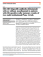 Cibisatamab is a bispecific antibody-based construct targeting carcinoembryonic antigen (CEA) on tumour cells and CD3 epsilon chain as a T-cell engager. Here we evaluated cibisatamab for advanced CEA-positive solid tumours in two open-label Phase 1 dose-escalation and -expansion studies: as a single agent with or without obinutuzumab in S1 (NCT02324257) and with atezolizumab in S2 (NCT02650713). Primary endpoints were safety, dose finding, and pharmacokinetics in S1; safety and dose finding in S2. Secondary endpoints were anti-tumour activity (including overall response rate, ORR) and pharmacodynamics in S1; anti-tumour activity, pharmacodynamics and pharmacokinetics in S2. S1 and S2 enrolled a total of 149 and 228 patients, respectively. Grade ≥3 cibisatamab-related adverse events occurred in 36% of S1 and 49% of S2 patients. The ORR was 4% in S1 and 7% in S2. In S2, patients with microsatellite stable colorectal carcinoma (MSS-CRC) given flat doses of cibisatamab and atezolizumab demonstrated an ORR of 14%. In S1 and S2, 40% and 52% of patients, respectively, developed persistent anti-drug antibodies (ADAs). ADA appearance could be mitigated by obinutuzumab-pretreatment, with 8% of patients having persistent ADAs. Overall, cibisatamab warrants further exploration in immunotherapy combination strategies for MSS-CRC. Cibisatamab is a T-cell bispecific antibody targeting the carcinoembryonic antigen (CEA) on tumor cells and CD3 epsilon chain on T cells. Here the authors report the results of two clinical trials of cibisatamab as monotherapy (NCT02324257) and in combination with atezolizumab (anti-PD-L1; NCT02650713) in patients with CEA-positive solid tumors. |