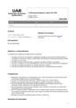 | Resum: | Los objetivos de la asignatura son básicamente los siguientes: 1. Conseguir una base de conocimientos y bibliografía actualizada y plural sobre las distintas temáticas demográficas, económicas, políticas y institucionales relacionadas con la Monarquía Hispánica durante los siglos XVI, XVII y XVIII. 2. Conseguir niveles de expresión escrita y oral propios del ámbito científico y universitario. 3. Avanzar en la reflexión y la crítica historiográficas a partir de las temáticas específicas de la asignatura. 4. Fomentar las actitudes participativas en el trabajo intelectual y científico. 5. Fomentar las actitudes de esfuerzo y de respeto personal en el trabajo intelectual y científico. |