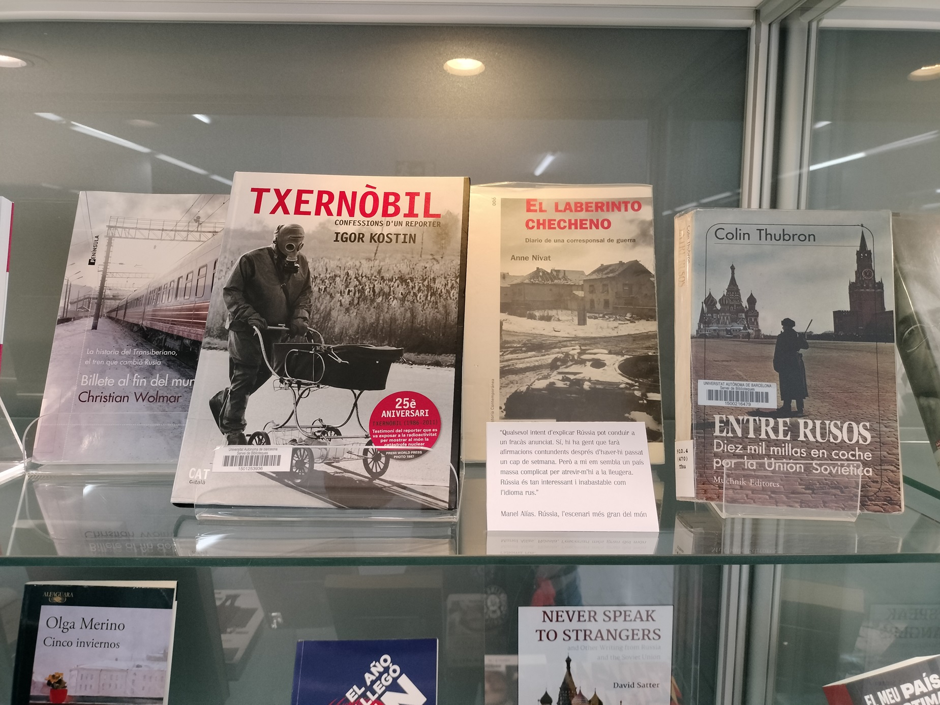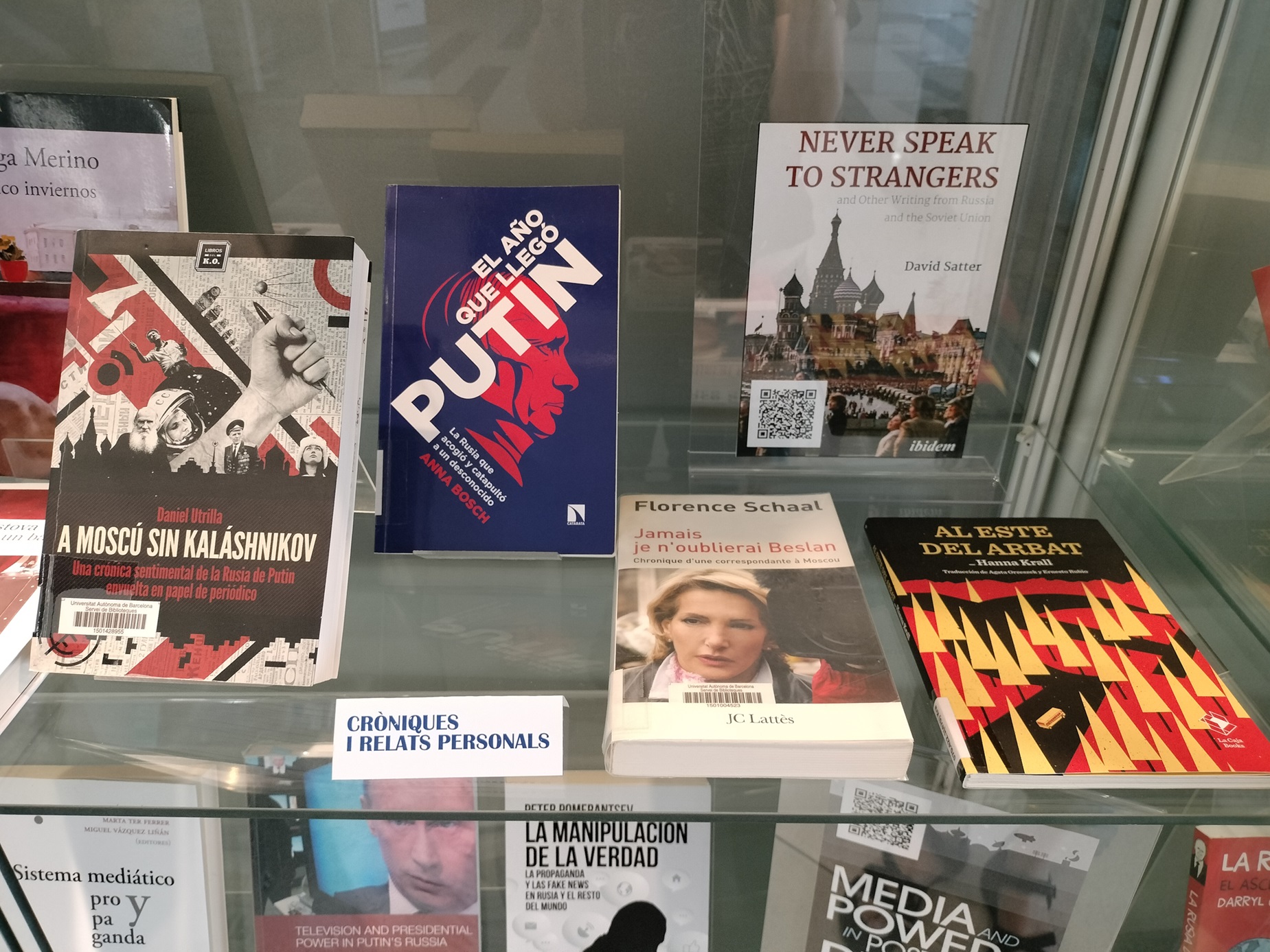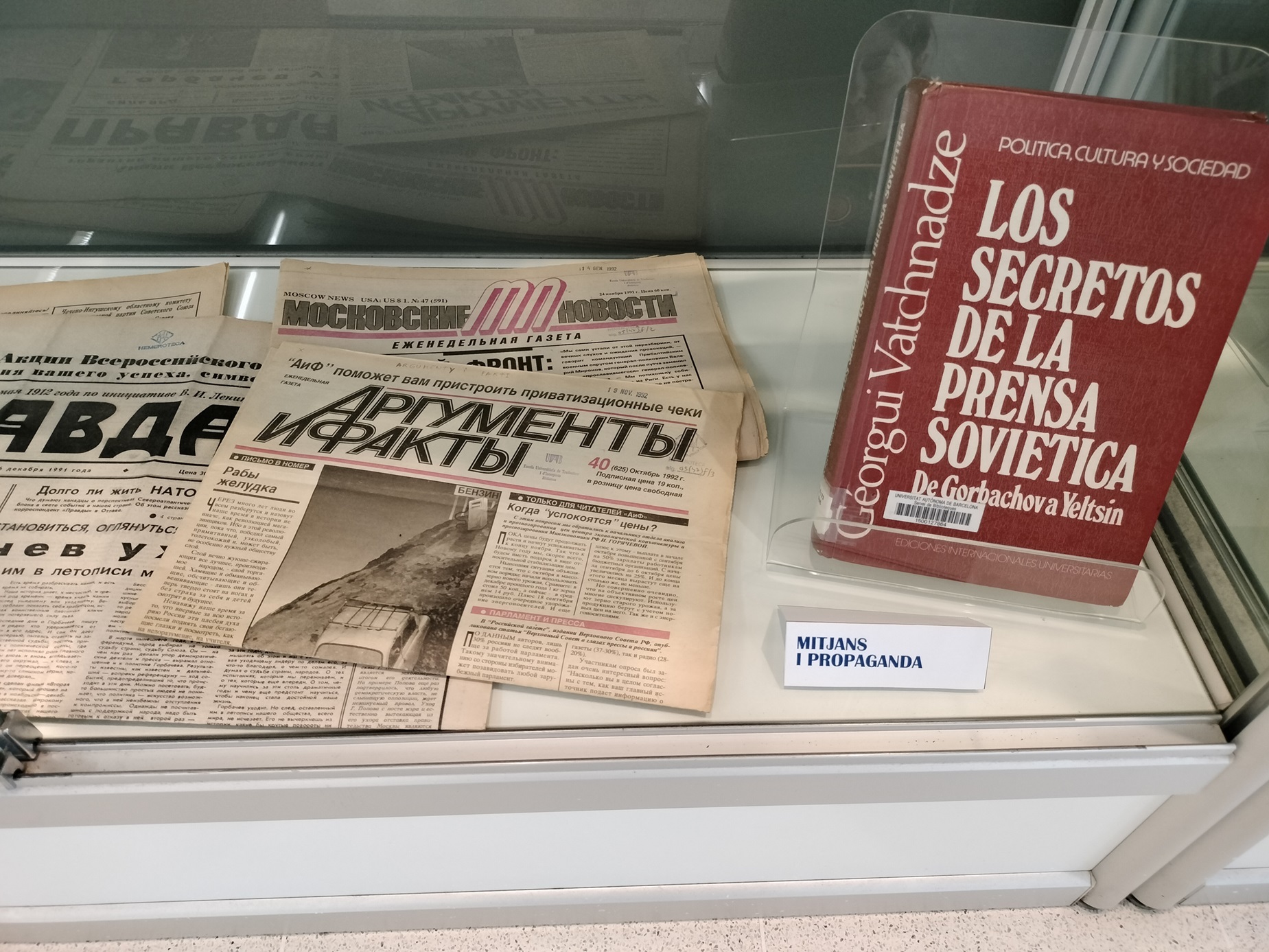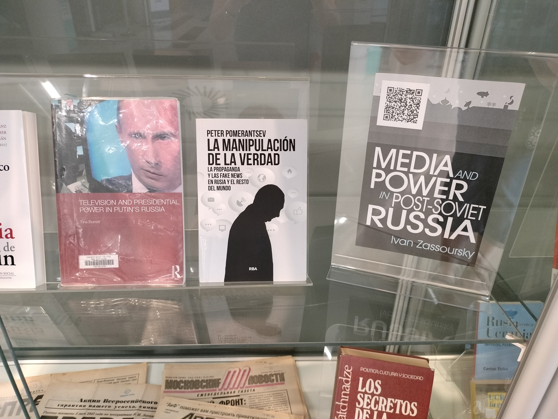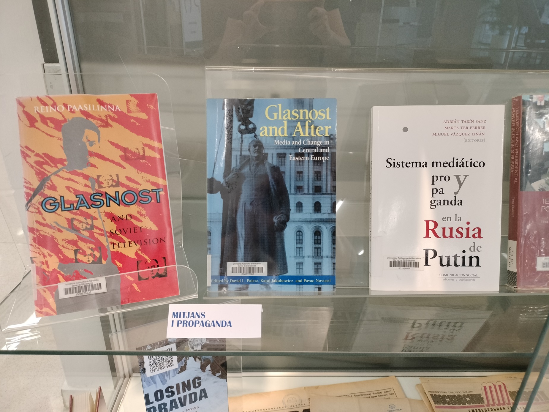 | Resum: | Exposició bibliogràfica organitzada per la Biblioteca de Comunicació i Hemeroteca General a partir de l'1 d'octubre de 2025 a les vitrines de la planta baixa. L'exposició presenta una selecció de llibres sobre el panorama mediàtic de Rússia de les últimes dècades, així com un recull d'obres periodístiques que aborden la política i la societat russes. |