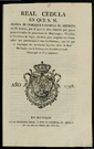 Cèdula Reial per la que es concedeix a tots els posseidors de "Mayorazgos, Vínculos y Patronatos de legos", la facultat per a alienar els béns arrels que pertanyin a aquestes fundacions, per tal que s'imposin els seus productes líquids sobre la Real Hisenda. . |