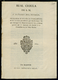 Cèdula Reial per la que s'aprova la tarifa inserida en els serveis pecuniaris que han de fer aquells que obtinguin les dispensacions de llei, i altres gràcies que s'expressin amb destí a la consolidació de Vals Reials. . |