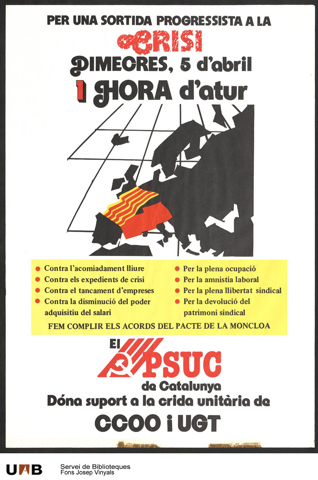| Drets: | Aquest material està protegit per drets d'autor i/o drets afins. Podeu utilitzar aquest material en funció del que permet la legislació de drets d'autor i drets afins del vostre país. No es requereix cap permís del(s) titular(s) dels drets per a usos educatius. Per a d'altres usos heu d'obtenir permís del(s) titular(s) de drets. Cal citar la font: "Universitat Autònoma de Barcelona. Biblioteca de Comunicació i Hemeroteca General. CEDOC. Col·lecció de Cartells Fons Josep Vinyals". Per a qualsevol altre ús cal demanar autorització. |
